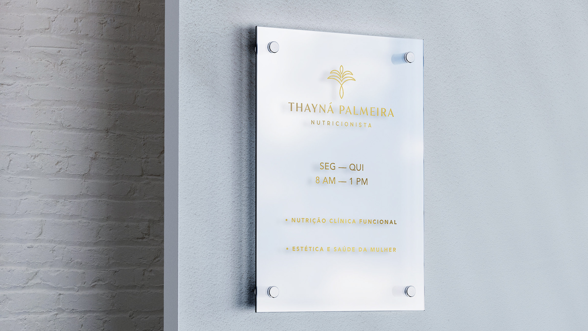 Thayná Palmeira é uma nutricionista especializada na saúde da mulher. Thayná estava em busca de uma identidade que refletisse sua vocação pela profissão, cuidado com os seus pacientes e com sua audiência nas redes sociais. A marca reflete o seu posicionamento e suas características pessoais.